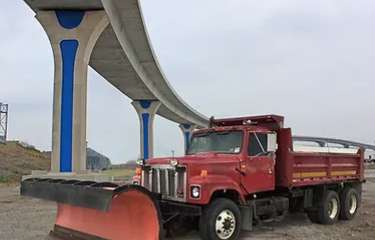 When snow starts falling, two plow trucks work in tandem with each clearing one direction of travel while applying ice melt. Plowing and ice melt application continues until snowfall stops. At the end of a winter weather event, any snow accumulation is removed from bridge shoulders by the front loader and another layer of ice melt is applied to prevent refreezing.